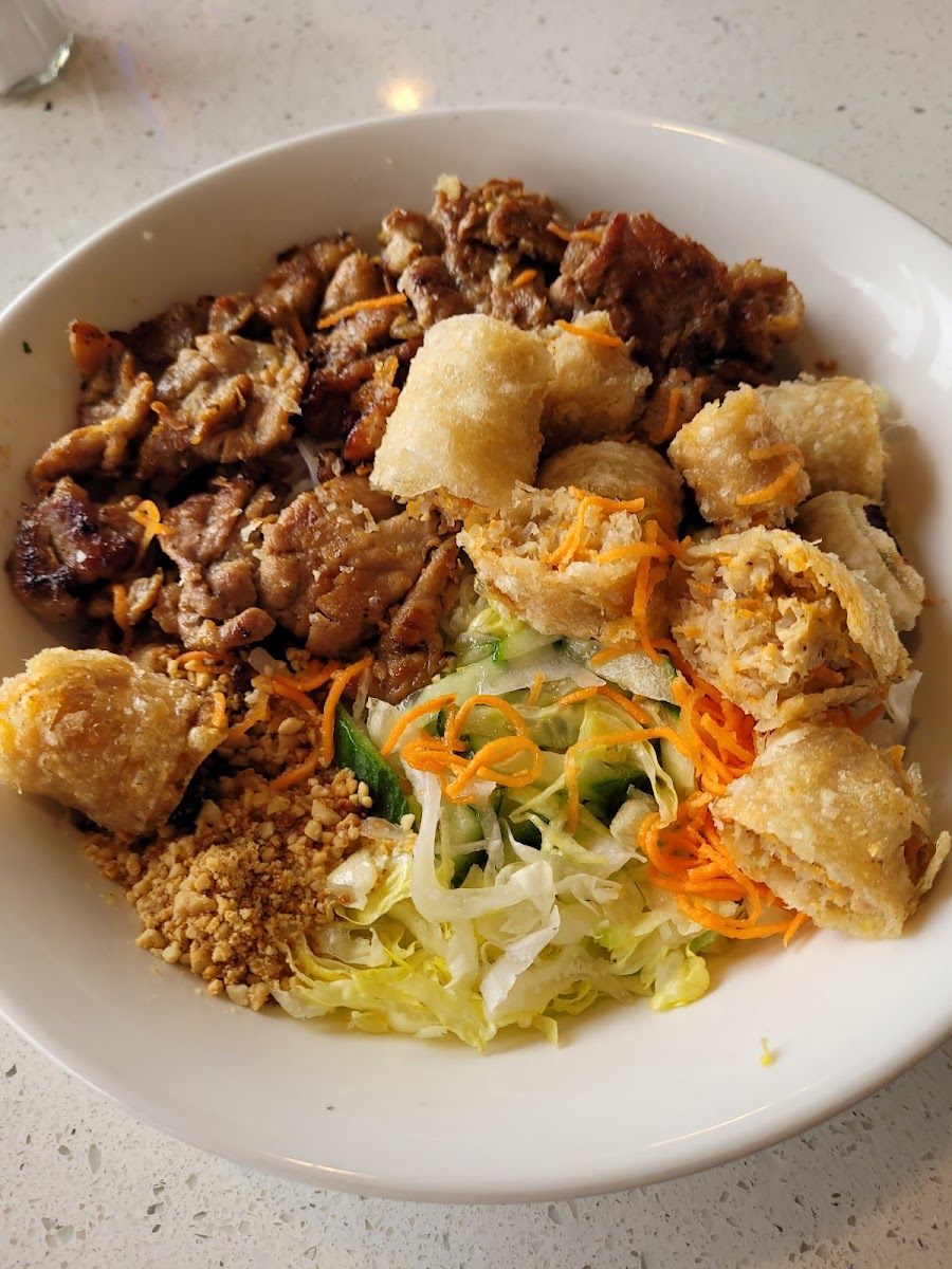 As you move through the menu, don't miss the lunch and dinner specialties. The Noodle Bowl (Bun) is a must-try, complete with spring rolls and grilled pork served over a bed of vermicelli and fresh vegetables. This dish balances texture and flavor expertly, providing a satisfying crunch from the vegetables and a savory richness from the grilled pork. For a vegetarian option, the Vegetarian Noodle Bowl is equally delightful, infusing classic Vietnamese favorites with fresh tofu and crisp veggies.